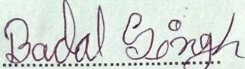| Name of Candidate: BADAL SINGH |